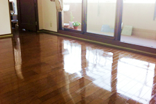 衝撃に弱いフローリングを生活傷、ペットのおしっこやツメ傷、様々な汚れ、除光液や漂白剤などからも長期間ガードします。また、シックハウス症候群の原因を作るホルムアルデビト等の心配がない当社のコーティング剤は生活に最適なノンスリップなので、年配の方や、お子様、ペットにも快適フロアを提供します。現在お住まいのお宅でも、一日だけの作業で高級感ある美しいフローリングを長期間保証いたします。